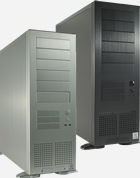 verfügt auch über ein aktives Wärme-Austausch-System und Fornt-USB-Anschlüsse. Zwei Gehäuselüfter sitzen vor den Festplatten
